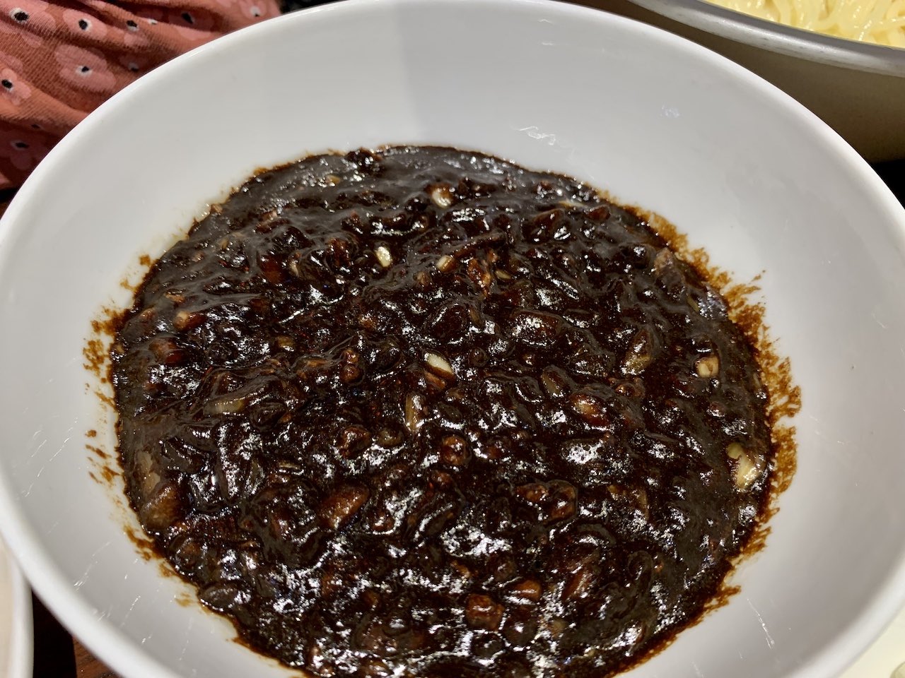 처음 먹었을 때, 간짜장인데 양파가 잘게 썰어져 있어 색달랐다. 생각해 보면 물하고 녹말가루를 사용하는 대신 춘장을 기름에 볶아서 만드는 게 간짜장이라 양파 크기는 상관이 없다. 귀찮아서 잘게 안 자르나?