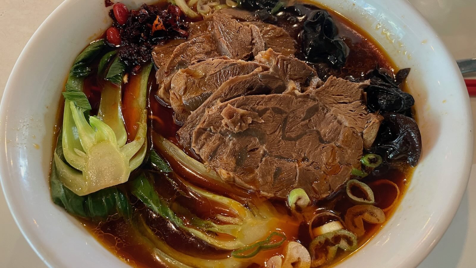 만두는 꼭 시켜야 한다. 한입 베어 물었더니 육즙 발사. 육즙에 깜짝 놀랐다. 단무지에 다 튀어서 단무지를 더 달라고 했다. 겉은 바싹하고 속은 육즙이 한가득이다. 여기서 우육면만 먹으면 손해다.
