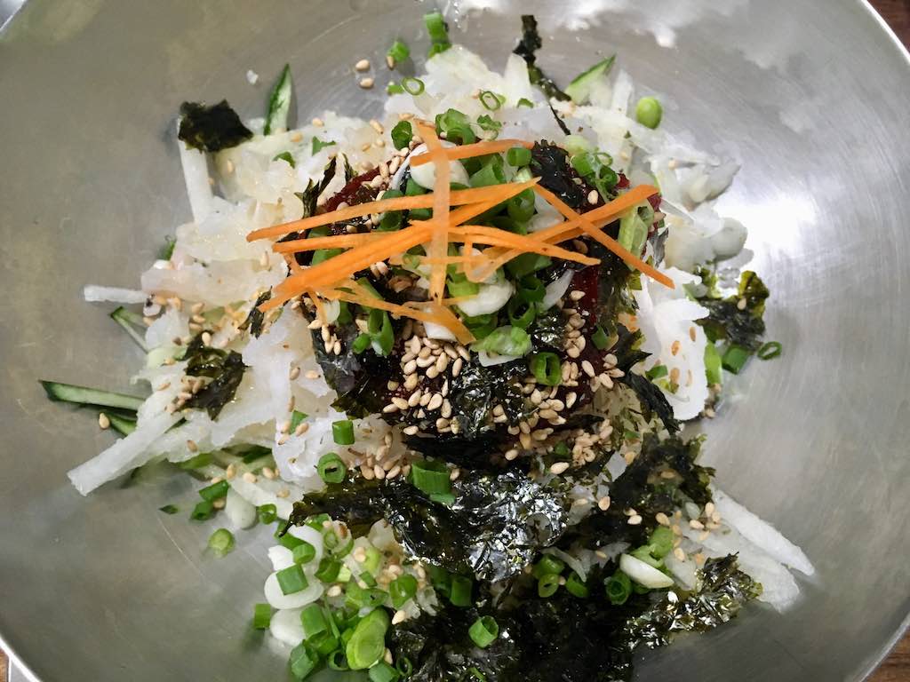 반쯤 먹다가 물을 넣어서 먹으면 된다. 멍게를 넣은 건 무리수였다. 육수의 강한 맛이 없으니 비린 맛이 난다. 마라도 횟집 달인 물회는 육수가 있어서 비린 맛이 안 났다. 다음엔 모듬이 아니라 기본 물회를 시켜야겠다. 여기는 광어 물회가 기본이다.
