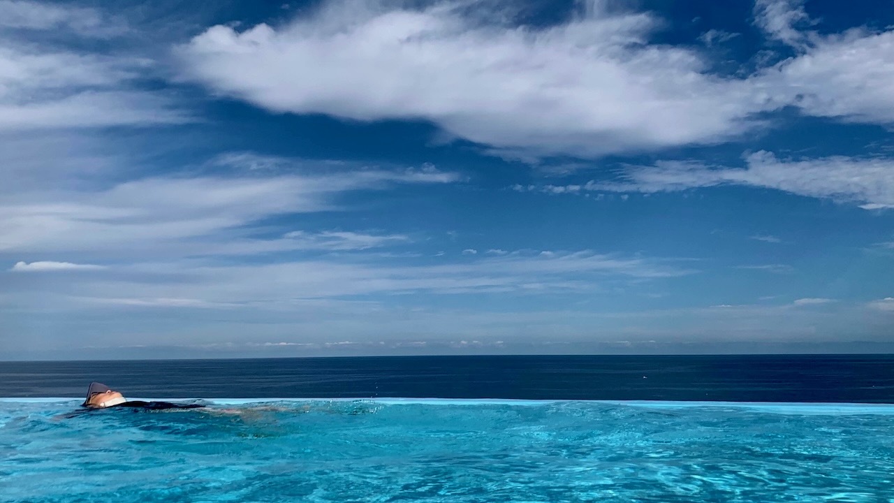 물놀이는 즐겁다. 미지근한 실내에서 하얗게 눈이 내린 실외로 나가는 유수 풀에 한동안 몸을 맡겼다. 몸을 띄워서 누워있으면 걸림 없이 한 바퀴를 돌 수 있게 물이 흐르는 속도가 만족스럽다. 실외에 있는 높은 미끄럼틀을 보니 파라다이스 스파 도고보다는 좀 더 다이나믹해 보였다.